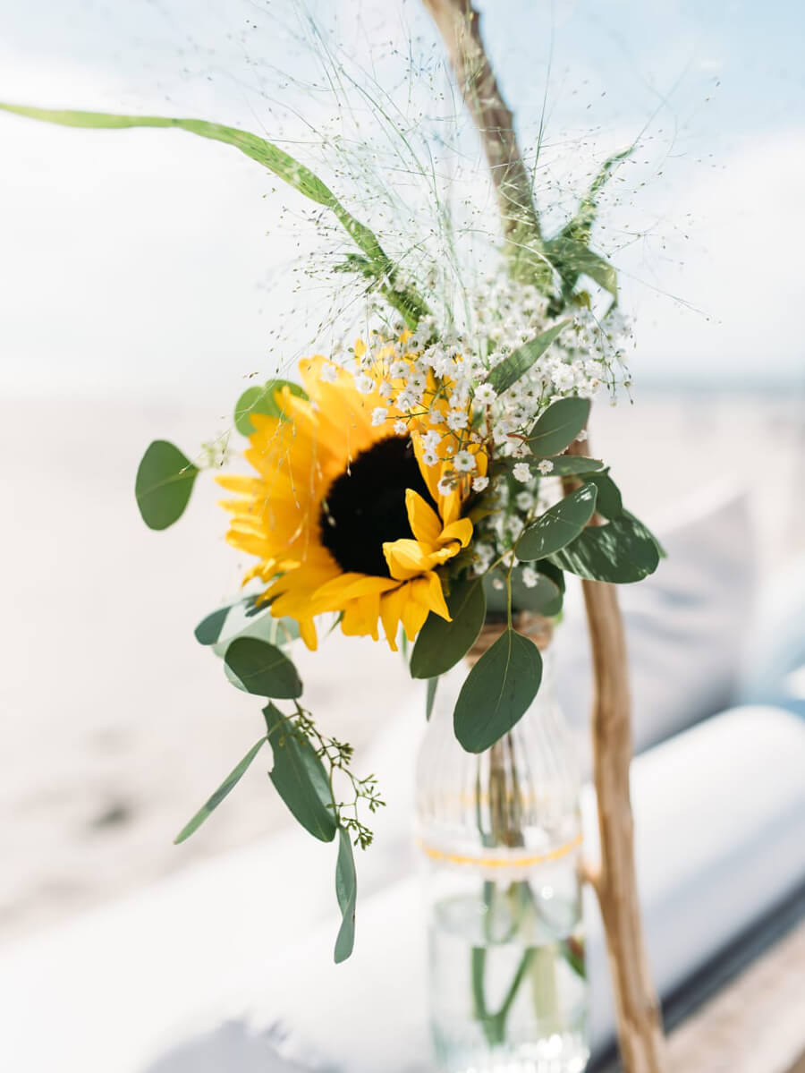 Naast de kistbekleding kan er gedacht worden aan een aankleding van het uitvaartcentrum met bloemen. Bijvoorbeeld 2 mooie vazen opgemaakt met zijn of haar lievelingsbloem.